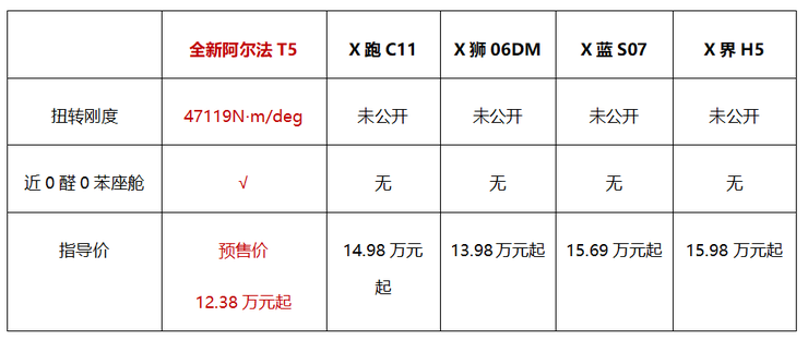 全新阿尔法T5采用1500MPa高强度热成型钢,高强钢及铝合金占比高达81%,扭转刚度达到了47,119N·m/deg,与之对比劳斯莱斯幻影的扭转刚度是40,000N·m/deg,“公路坦克”实至名归。
